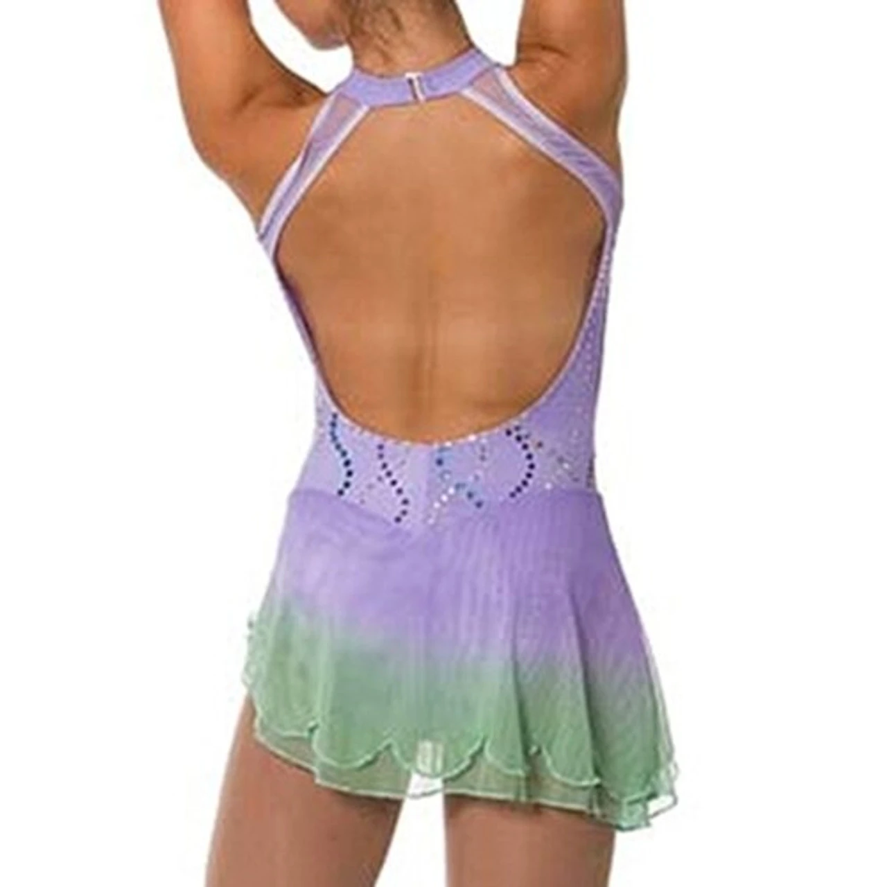 Italian matte tricot bodice with stretch illusion mesh neckline inserts—hooks at back of neck. Skirt gracefully splits to hip with our newest hand-cut scalloped edge–and, dipped-dyed contrast color. Every color combination is just beautiful in this sophisticated dress. The styling will definitely catch the judge’s eye!